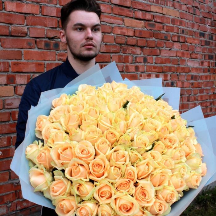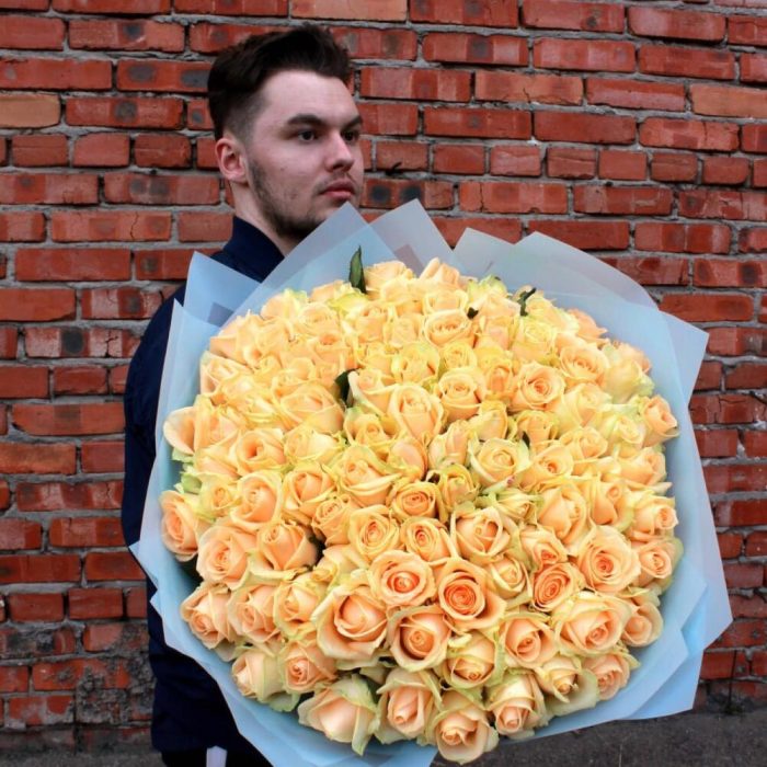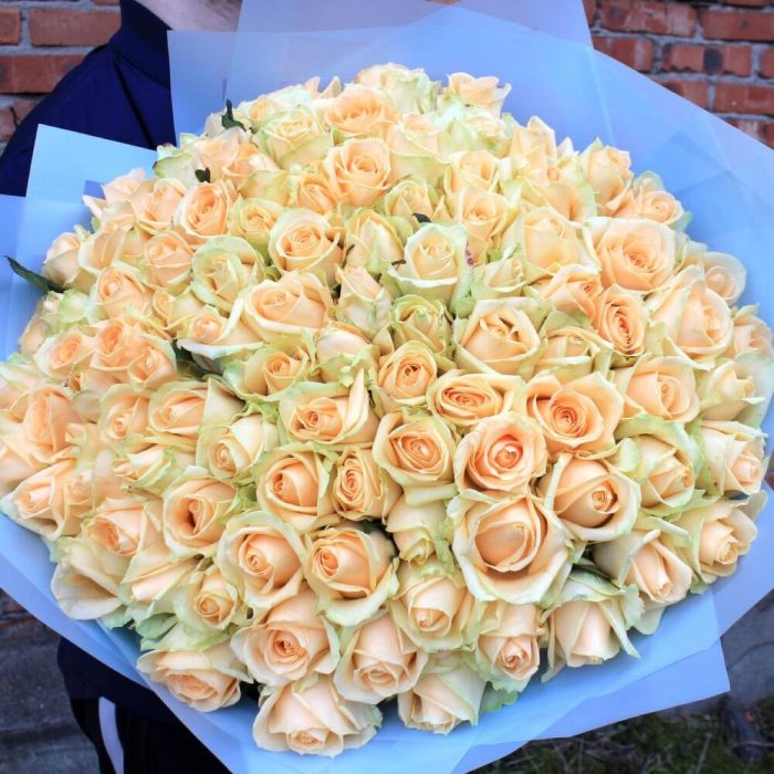 роза пич аваланж – 101 шт.упаковочный материал – 3 шт.Лента атласная – 1 шт.