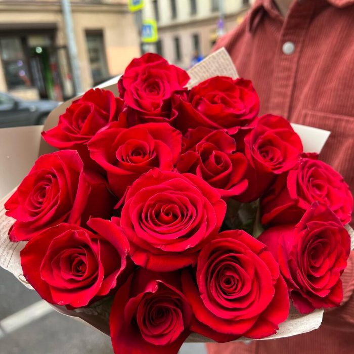 роза красная фридом – 15 шт.Упаковка дизайнерская – 1 шт.
