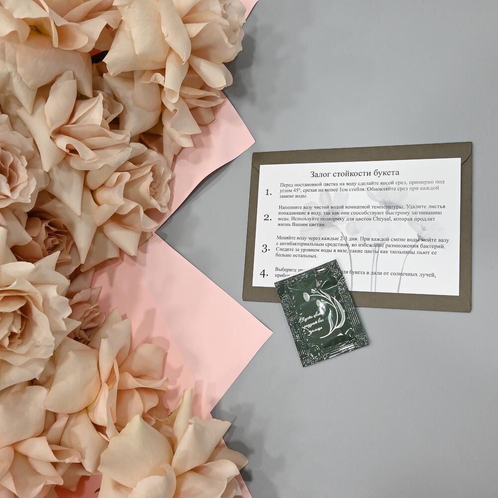 - Сроки возврата: Претензии по качеству букета принимаются в течение 24 часов с момента его получения.