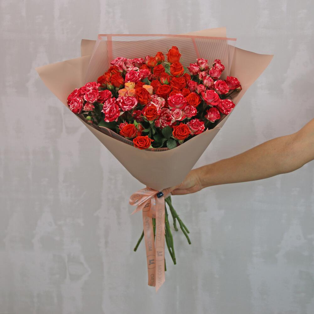 Букет из 15 кустовых и одноголовых Роз 50 см