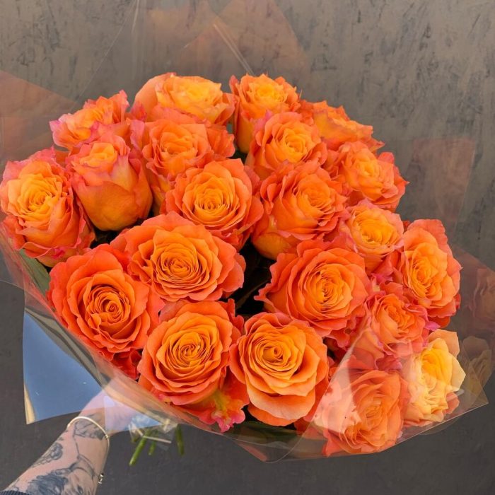 роза фри спирит – 21 шт.Упаковка дизайнерская – 2 шт.Лента атласная – 2 шт.