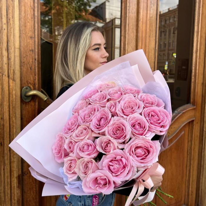 Букет из 25 Розовых роз premium 60см