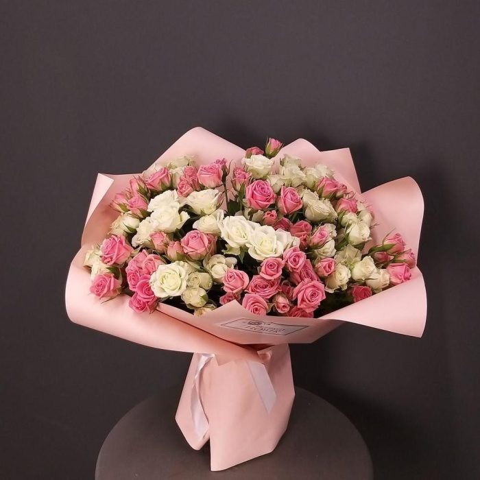 Большой букет кустовых роз