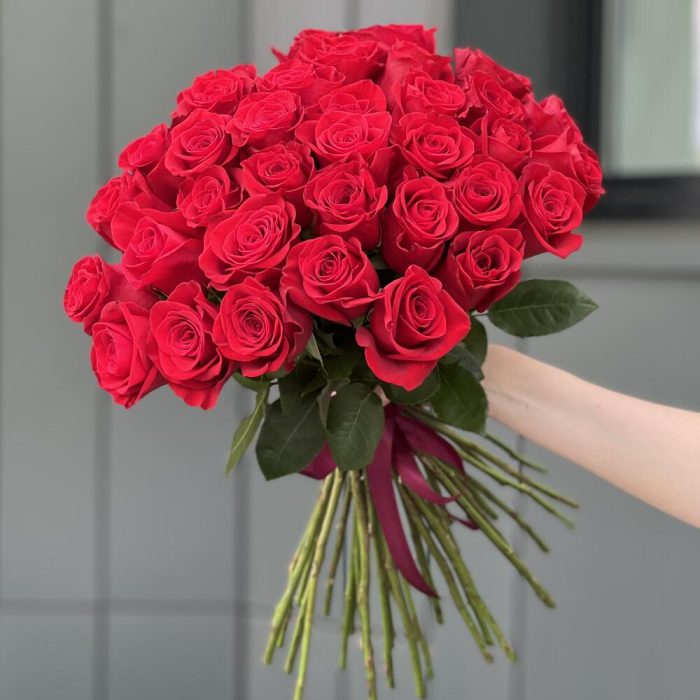 Красная роза – 35 шт. оформление – лента – 1 шт.