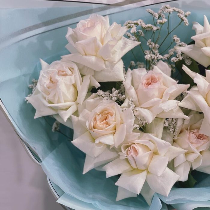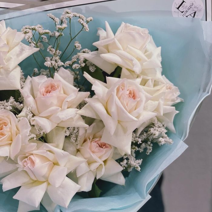 Лимониум – 4 шт.Тишью – 2 шт.Фисташка – 2 шт.Упаковка дизайнерская – 2 шт.роза охара пионовидная – 9 шт.