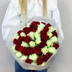 Букет из белых и красных роз Кения 40 см 51 шт