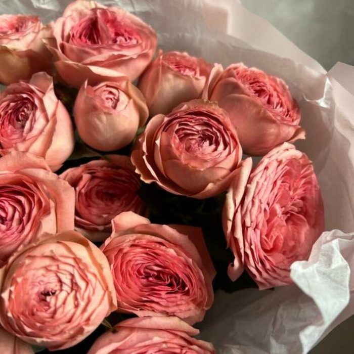 Кустовая пионовидная роза – 5 шт.декоративная укпаковка – 1 шт.Атласная лента – 1 шт.