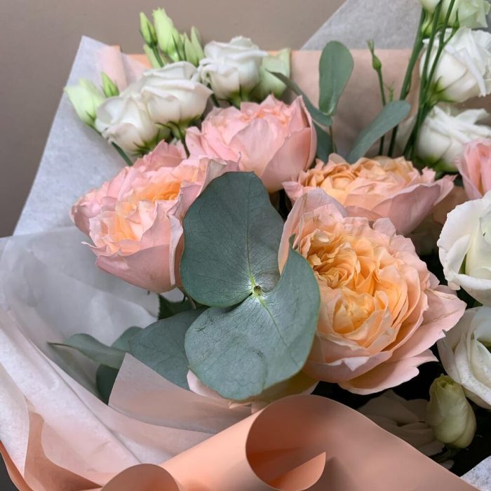 “Эвкалиптическая роскошь” гортензия и пионовидная кустовая роза