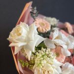 Букет из пионовидных роз, сирени и тюльпанов