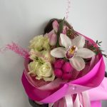 Букет из роз и орхидеи в дизайнерском оформлении