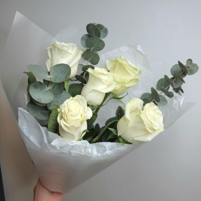 Роза – 5 шт.Эвкалипт – 3 шт.Упаковка дизайнерская – 2 шт.