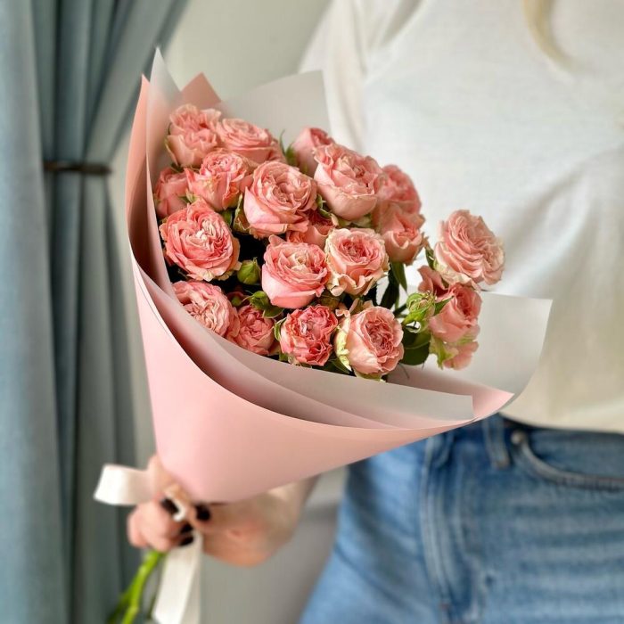 Пленка матовая – 2 шт.кустовая роза пионовидная мадам бомбастик – 5 шт.