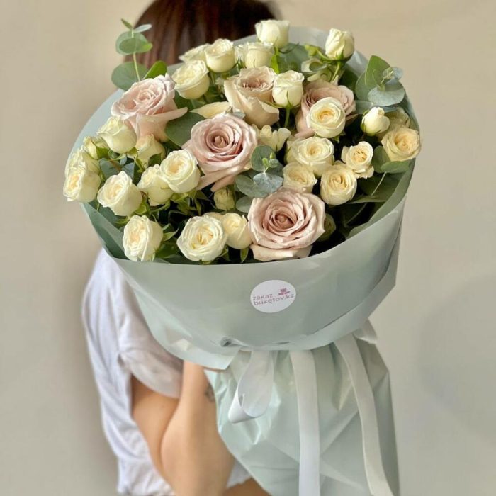 Альстромерии, Гвоздики, Кустовые розы, Лизиантусы, Розы, Хризантемы