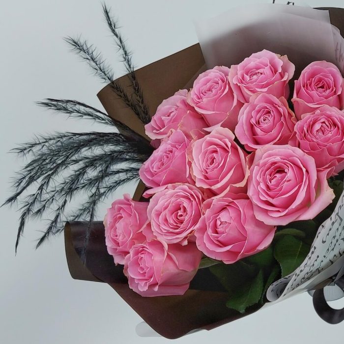 Роза Эквадор – 13 шт.Упаковка дизайнерская – 1 шт.ковыль крашеный – 1 шт.