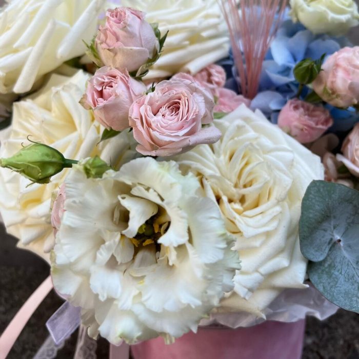 “Эвкалиптическая роскошь” гортензия и пионовидная кустовая роза