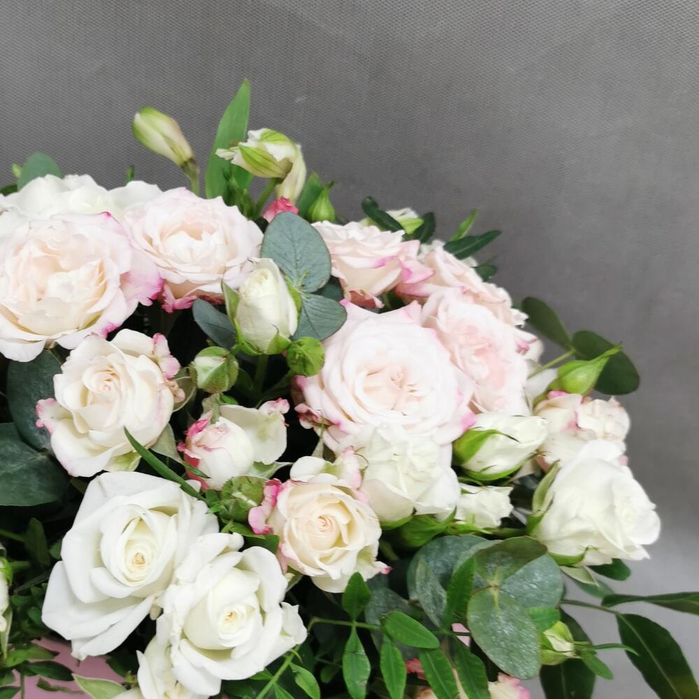 Альстромерии, Гвоздики, Кустовые розы, Лизиантусы, Розы, Хризантемы