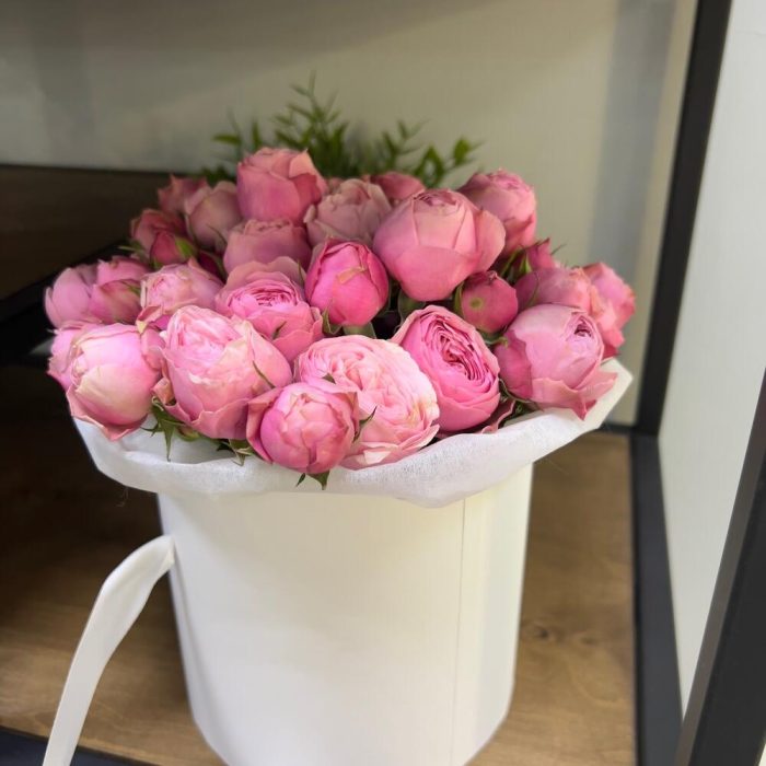Пионовидная роза кустовая в шляпной коробке ( шляпная коробка может отличаться по цвету – белая, розовая, голубая, сиреневая).Необычные и такие завораживающие пионовидные розы в шляпной коробке! Такая композиция не только очаровательный подарок, который останется в сердце у каждой обладательнице, но и удобный ведь его можно сразу же куда-нибудь поставить.Silvia pink – шикарная кустовая пионовидная роза, по приятной и вкусной цене – нет аналогов этому предложению и не будет. И нет аналогов этому сорту. Эксклюзивная Роза премиум класса.Кустовая пионовидная Роза , сорт Silvia Pink, цвет : розовый.Высота : 40-50 см, лёгкий аромат.Кол-во цветков на стебле: 3-5 шт.Устойчивость к жаре : низкаяВесь цветок свежий, проходит контроль качества.
