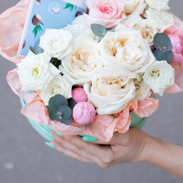 цветы в коробке с хлопком