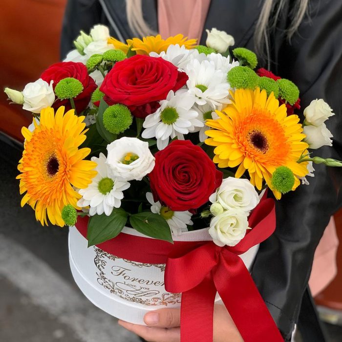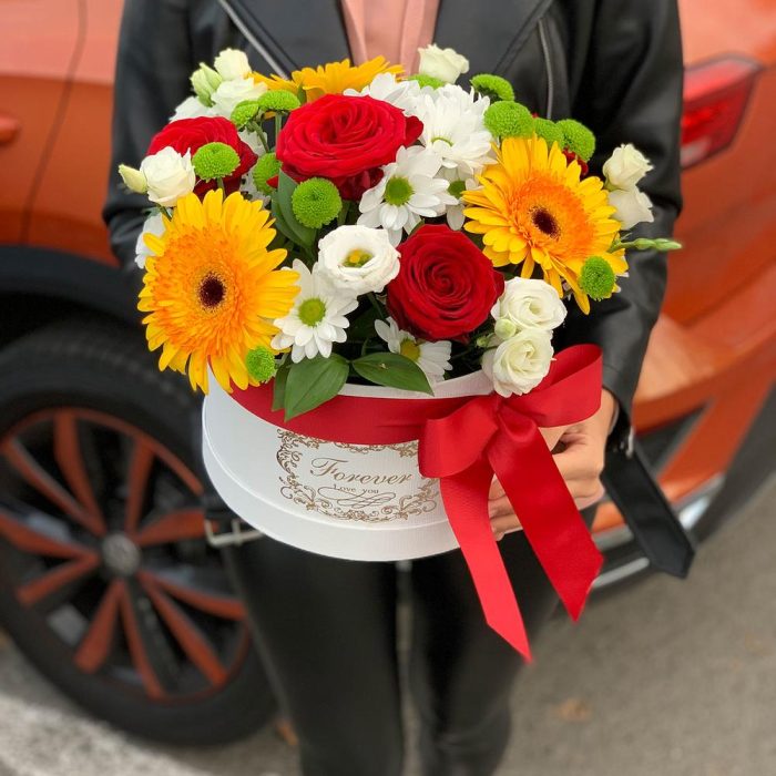 Цветы в коробке сборный букет