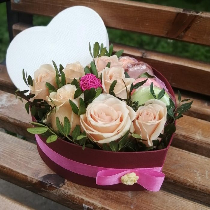Коробка сердце с цветами
