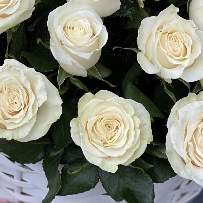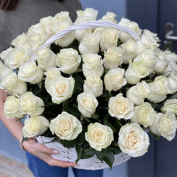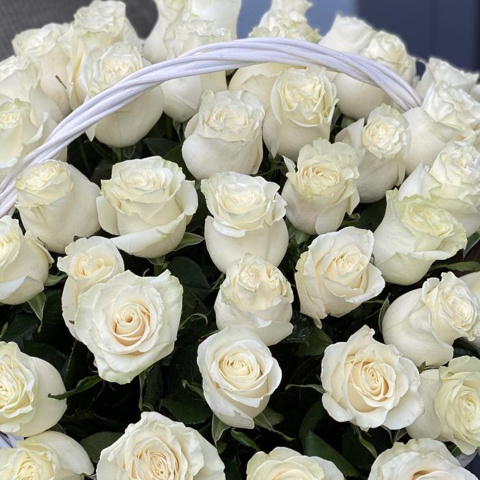 Корзина из белых роз Аваланж
