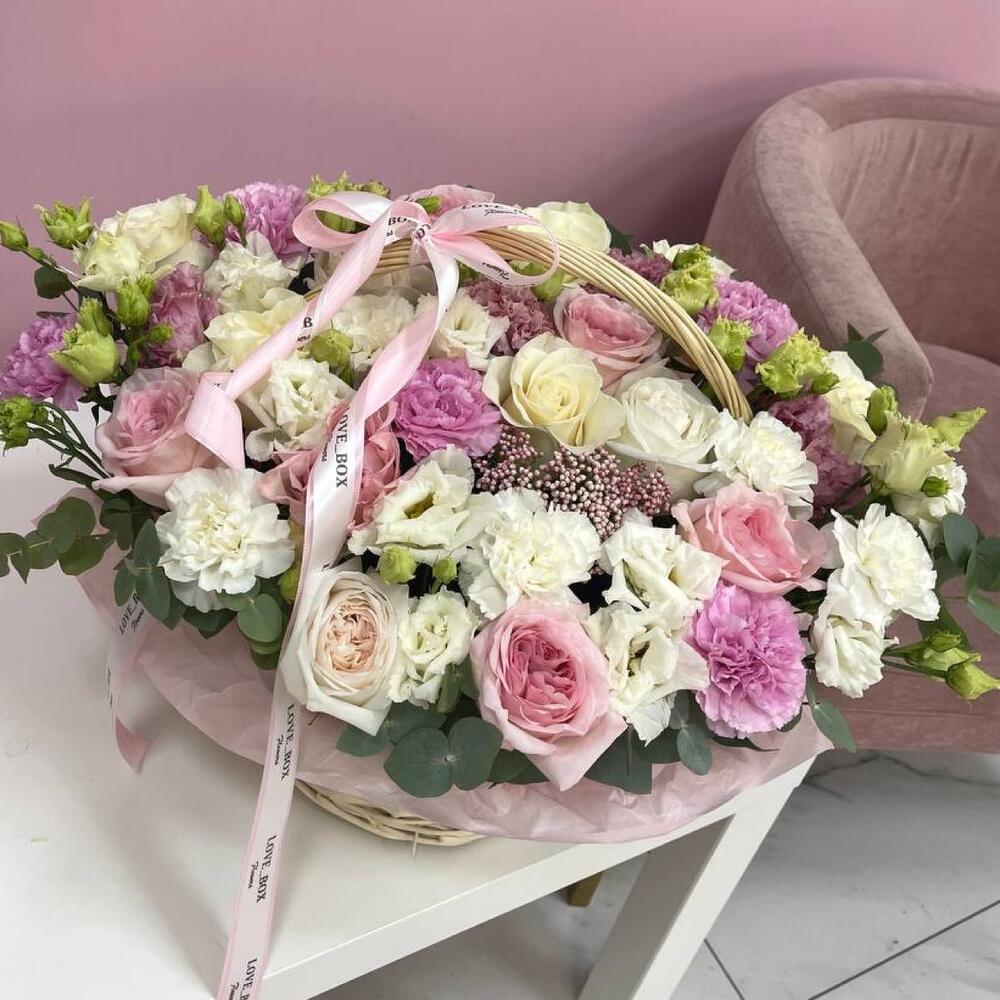 Метки: от 5000 руб, цветы в корзине