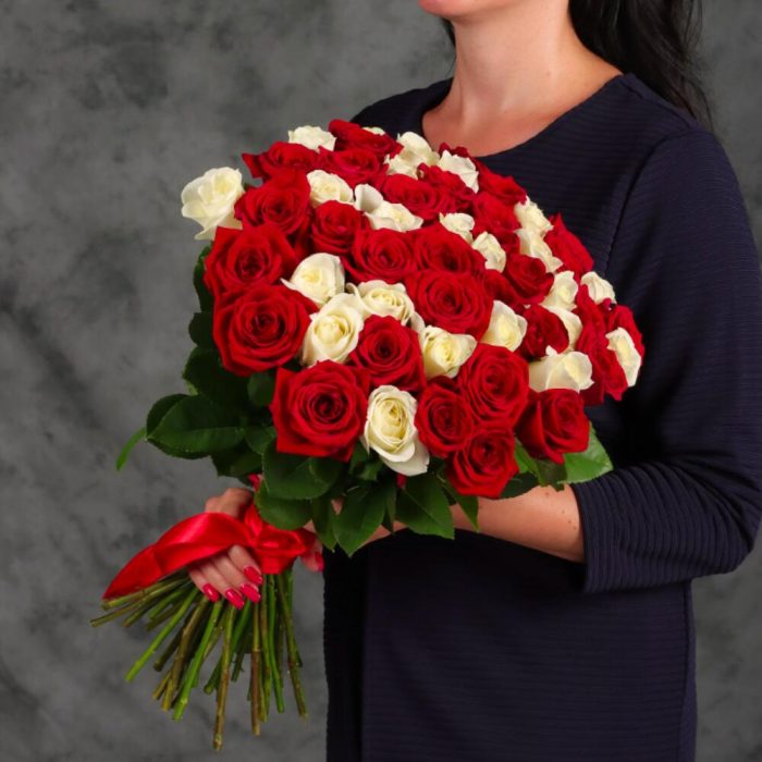 Роза – 51 шт. Лента – 1 шт.