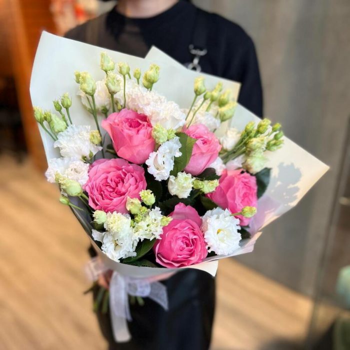 Микс розы и эустомы