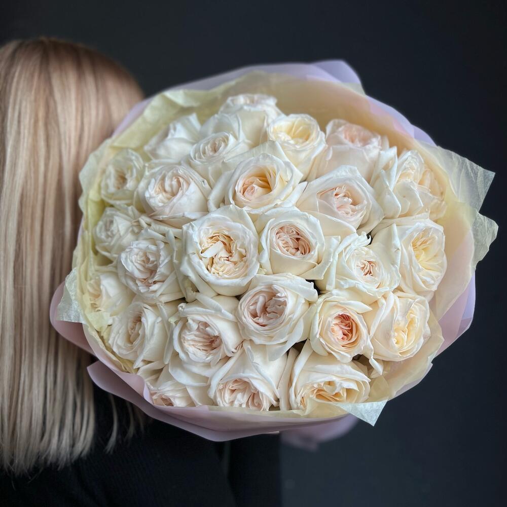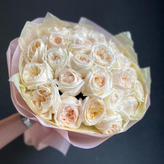 Моно букет из 25 ароматных, пионовидных роз
