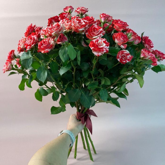 Кустовая роза – 7 шт.Лента атласная – 1 шт.