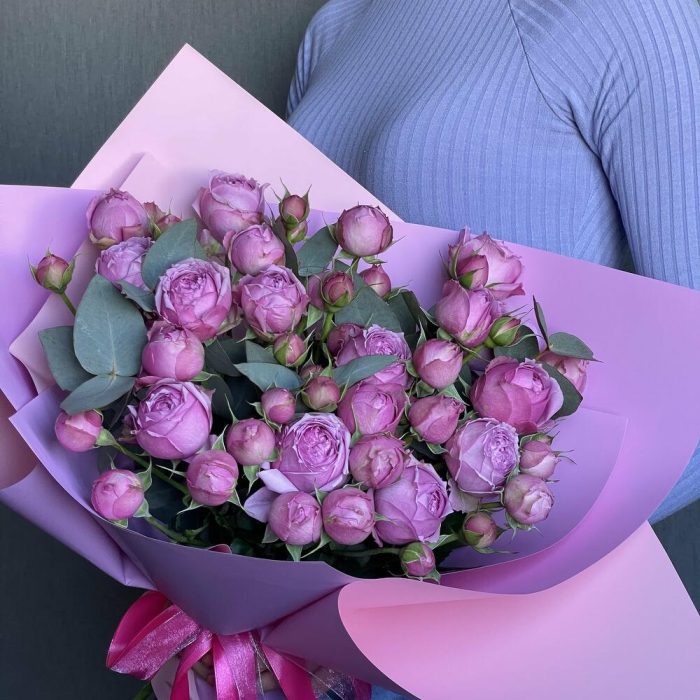 Монобукет из кустовой малиновой розы