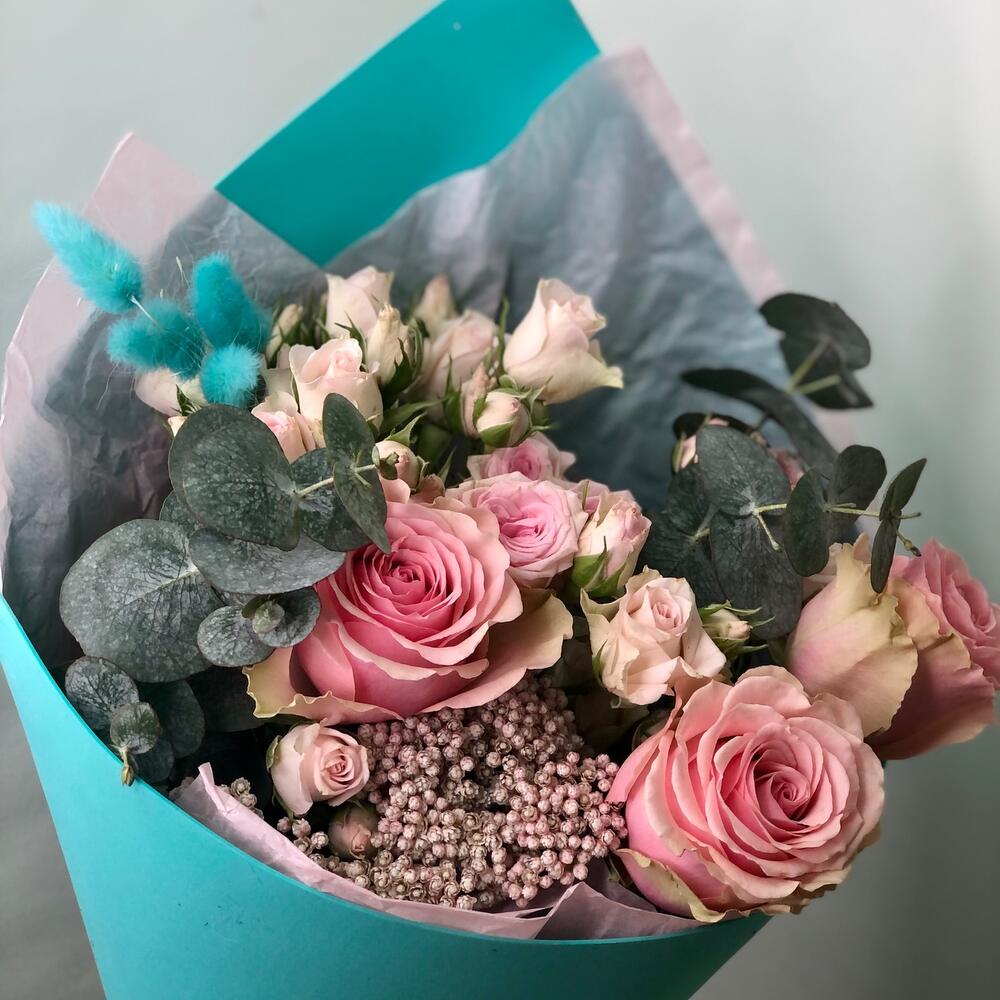 Кустовые розы, Лизиантусы, Розы, Сухоцвет