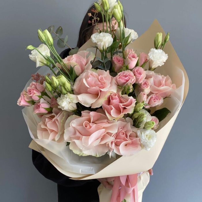 Гвоздики, Кустовые розы, Лизиантусы, Пионовидные розы, Розы
