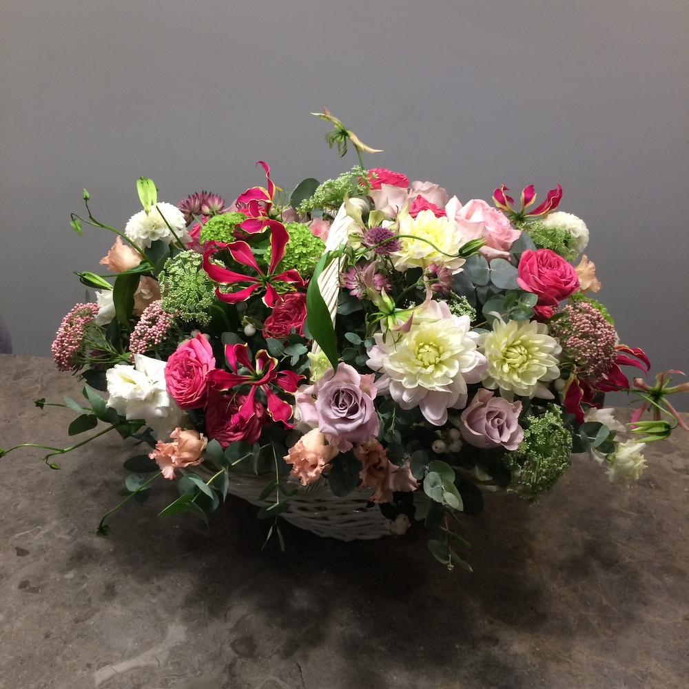 Метки: от 5000 руб, цветы в корзине