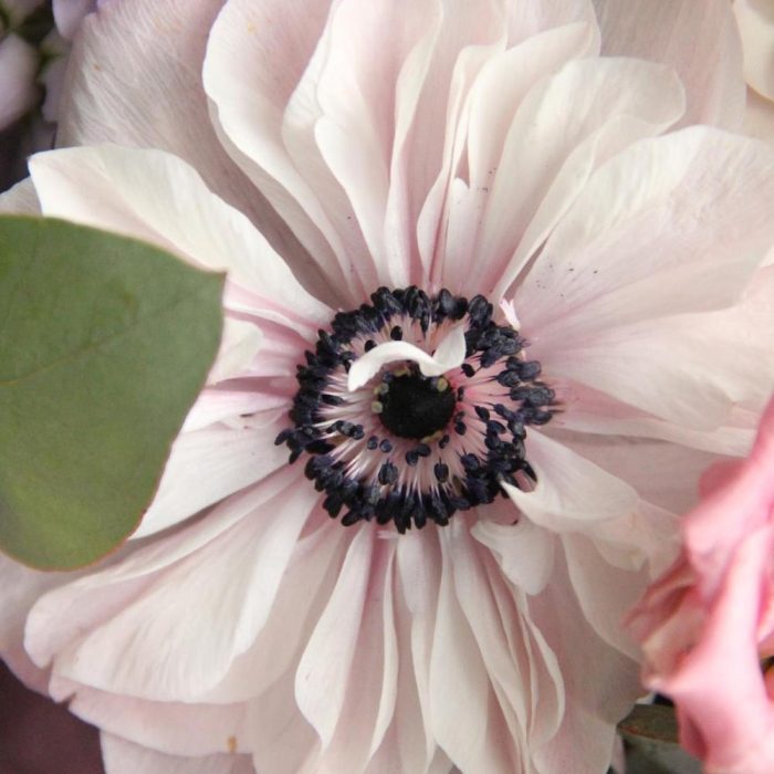 Авторский нежный букет с анемонами, пионами, твидией, матиоллой, лизиантусом и ароматным эвкалиптом, в локаничной упаковке.Стильное цветочное решение для любого случая .
