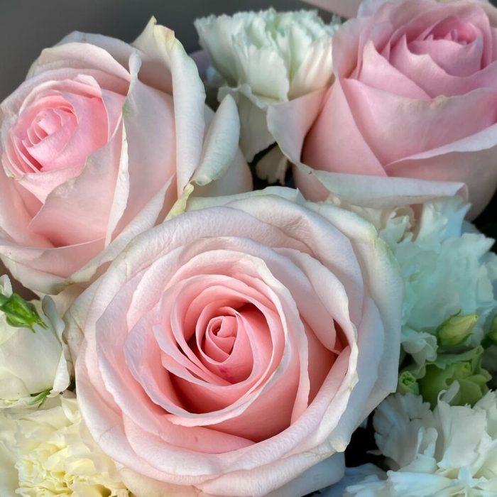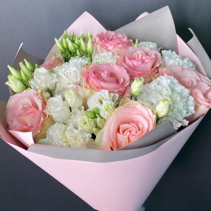 Категории: Гвоздики, Лизиантусы, Розы