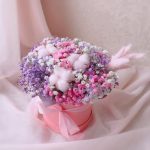 “Сиреневый туман” – композиция из гипсофилы в шляпной коробке