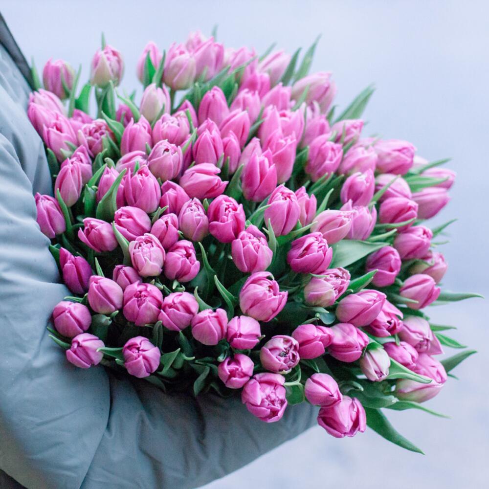 25 пионовидных сиреневых тюльпанов дабл прайс. Букет 200 Kimbirly Flowers